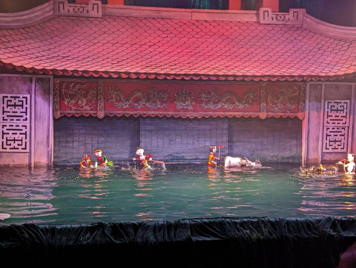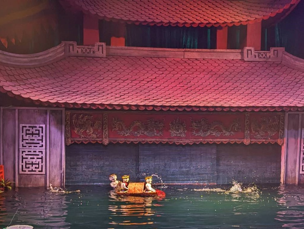 顧名思義就是在水上演木偶戲 (廢話),木偶們會浮在水上,但重點是操偶師下半身是站在水裡!是非常辛苦又厲害的傳統技藝