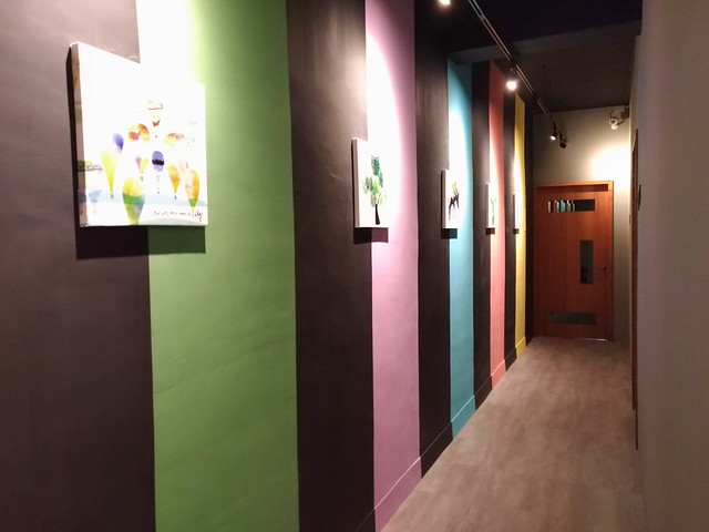 走廊很明亮,我超愛這個彩色走廊和這些畫😍
