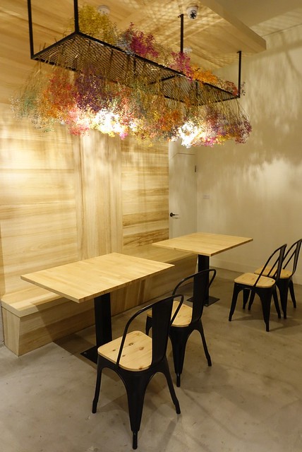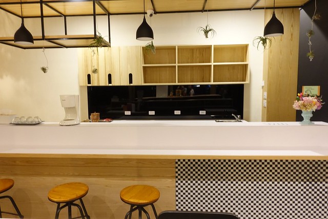 一進門就被大紅水管吸引,搭配一些木質元素讓工業風不那麼冷冰冰