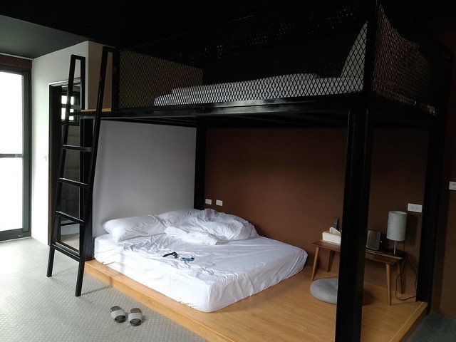 結果老闆說只要我們不使用另外兩張床,就讓我們用比較低的價格入住 201 工業四人間😍