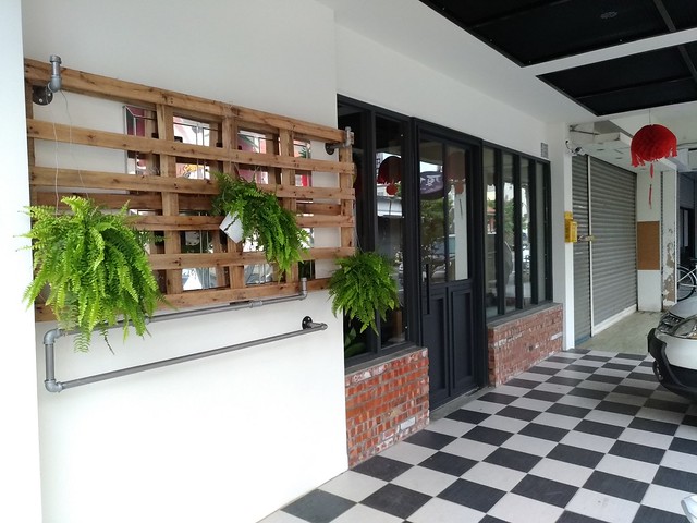 門口用時尚的黑白格地板,配上復古紅磚牆、大面玻璃窗,反差卻不違和