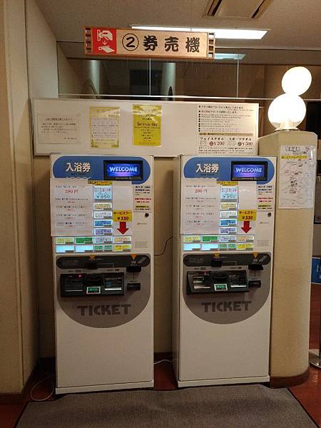 ▼沒有周遊券的人想泡湯就要按機器買券,我們則是直接撕周遊券附的小票券