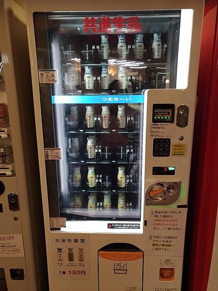 在日本,泡完湯外面休息的地方都會有很多販賣機,大家都說要喝牛奶,所以我們也買了兩罐冰牛奶🥛(只有冰的,不過剛泡完湯所以喝冰的也不會覺得冷)