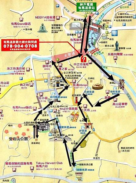 大家出發前可以先在網路上找有馬溫泉的地圖,了解一下想看哪些景點,大概在什麼位置,至於路線規劃我倒覺得是其次,因為這裡的路不複雜,到了現場再邊走邊看也OK