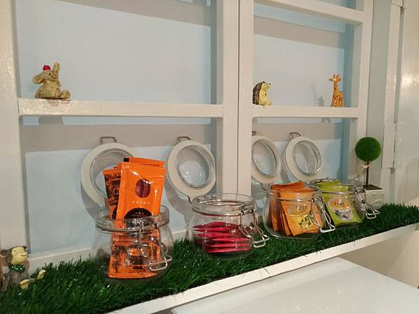 飲料並不是用飲料機,而是直接提供鋁罐裝的汽水和鋁箔包生活泡沫綠,熱飲則有天仁茗茶的茶包和二合一即溶咖啡可以自己泡,這點還蠻特別的