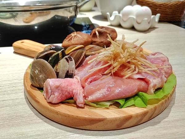 點餐方式和一般火鍋店類似,套餐內容包含基本鍋底、主餐、菜盤、澱粉類附餐、雞蛋一顆,並且因應現在許多人無肉不歡的趨勢,菜盤可以換成肉盤或蛤蜊哦