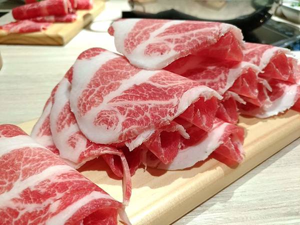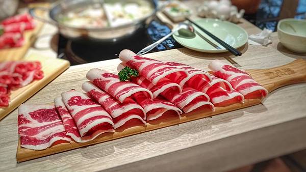 顏色是飽和的暗紅,擁有細細的大理石油花(Marbling),口感札實有嚼勁但不會過硬,慢慢嚼會有牛肉特有的香氣,我覺得是很不錯的火鍋牛哦
