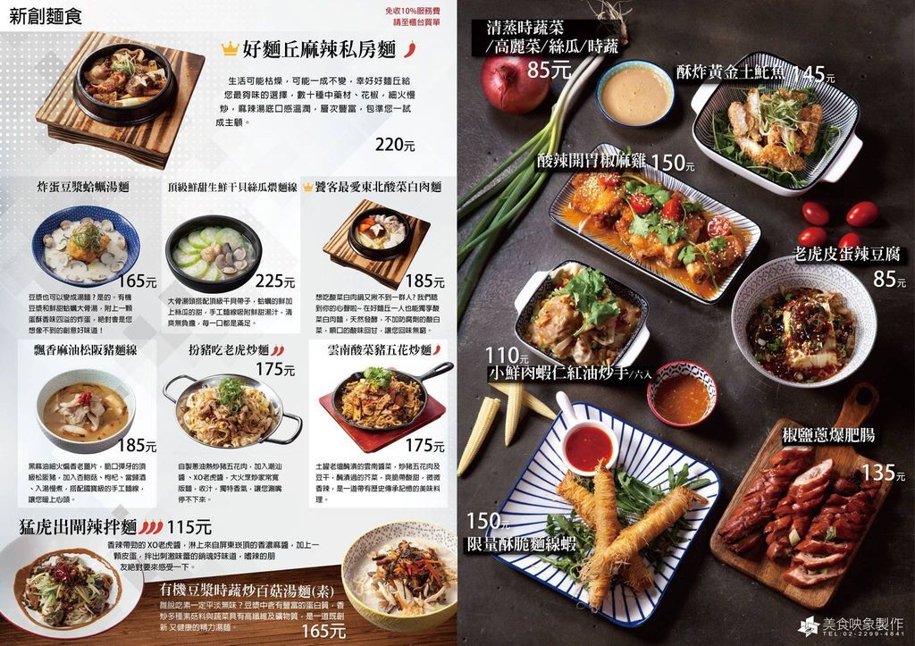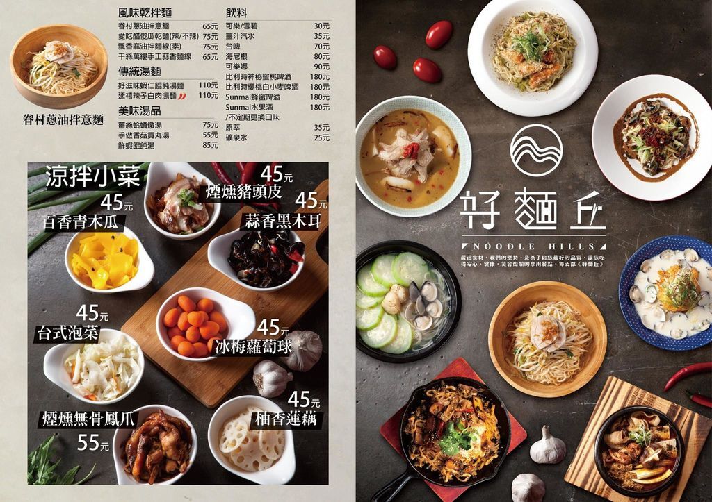 好麵丘提供非常多種麵,除了特殊的新創麵食外,也有大眾口味的乾麵、湯麵,還有一些配菜、小菜可以選