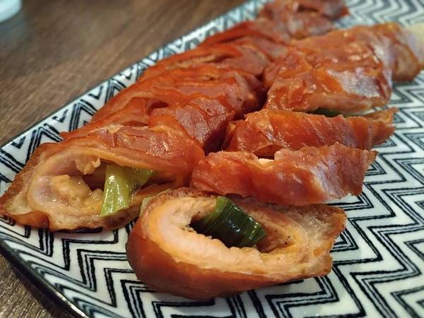 外皮非常酥脆,裡面很有嚼勁和彈性,中間包著蔥段還蠻特別的,對於害怕內臟味道的人應該可以壓壓腥(我個人是很愛腸子特有的味道啦哈哈哈)