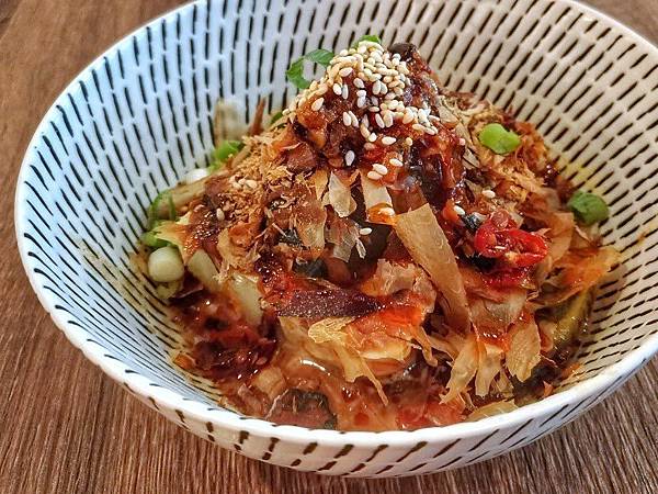這碗堆得高高的乍看之下有點看不出是什麼,但一上桌就有陣陣柴魚香氣撲鼻而來,讓人食指大動!