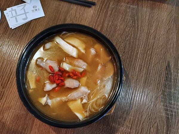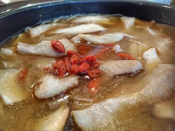 薑味不重,我個人是很喜歡麻油味道的人,覺得麻油味不夠香,有點小可惜,倒是喝得出有酒味,menu上有提到這邊用的是當歸酒,再加上麻油的好朋友枸杞,感覺就很溫中滋補啊