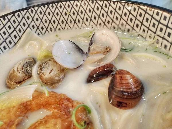 才想著蛤蠣在哪兒?湯匙稍微一翻就發現了藏在青菜底下的蛤蠣,還蠻多顆的,都很新鮮,不過我猜可能是後來才放的,所以湯頭並沒有蛤蠣的鮮味