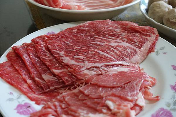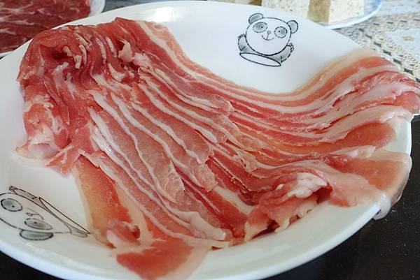 肉品部分附的是兩種牛和兩種豬,厚度是最適合涮火鍋的0.2公分,非常講究,而且肉都蠻大片的,涮起來不會支離破碎,口感很好