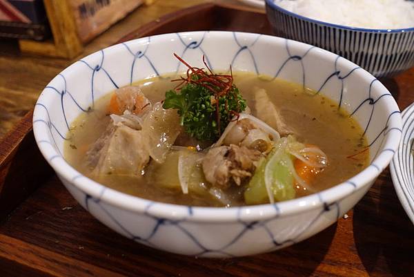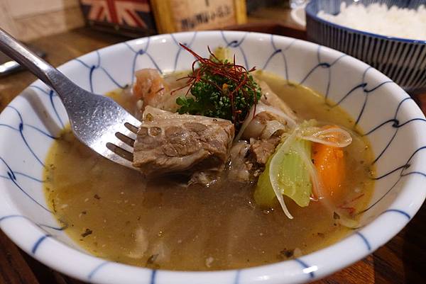 湯的色澤淡黃澄澈,加入洋蔥、西洋芹、紅蘿蔔燉煮軟爛,還有一些義式香料