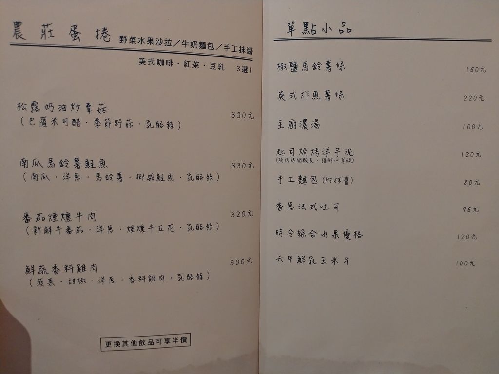除了漢堡、三明治、班尼迪克蛋、蛋捲、溫沙拉等比較西式、輕食的餐點,也有主廚私房飯系列,對於大胃朋友或長輩都很適合