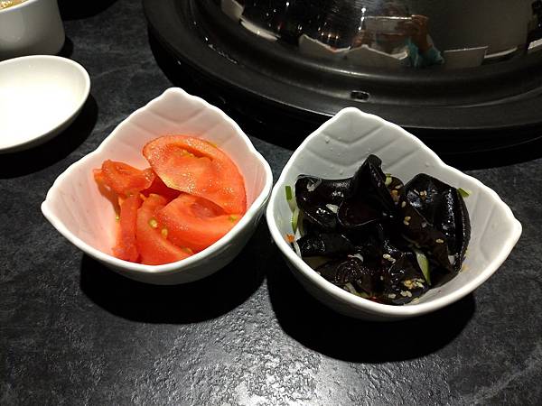 小菜有酸酸的醃漬蕃茄和涼拌木耳,都很開胃