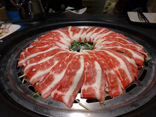 蓋回蒸架緊接著就是超美的肉盤!我們選的是牛五花