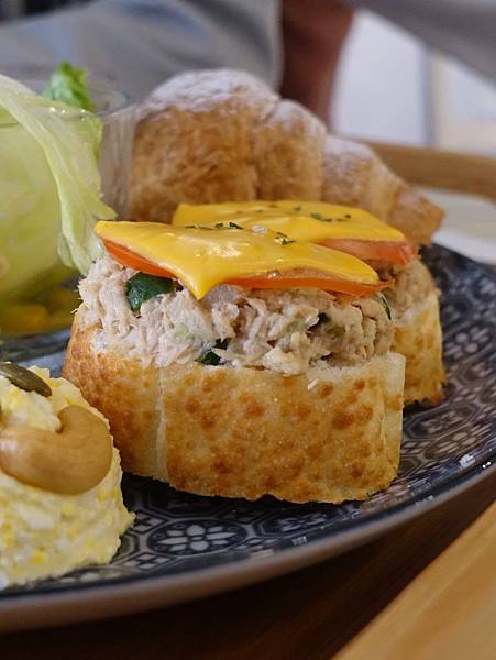 堆疊得高高的鮪魚起司軟法造型相當吸睛,鮪魚毫不手軟給了超級多,搭配香濃起司片和酸甜多汁的蕃茄切片,好看又好吃