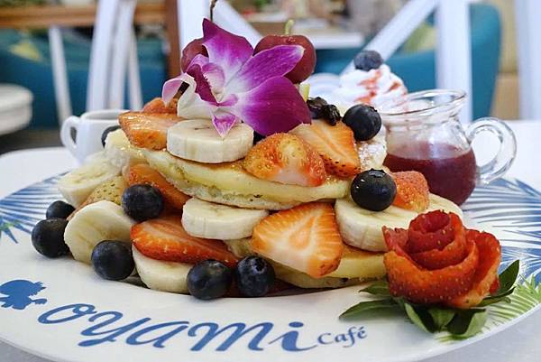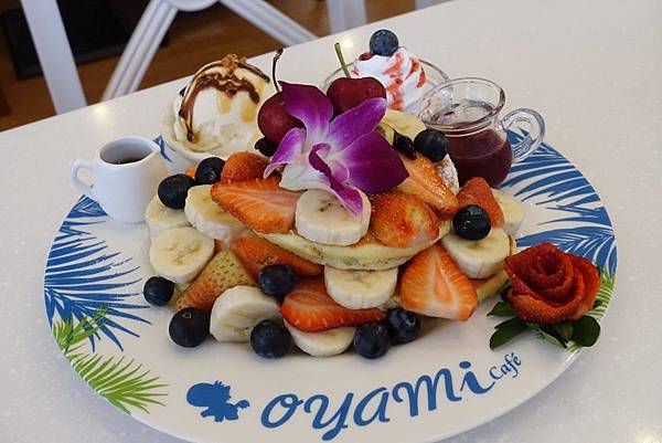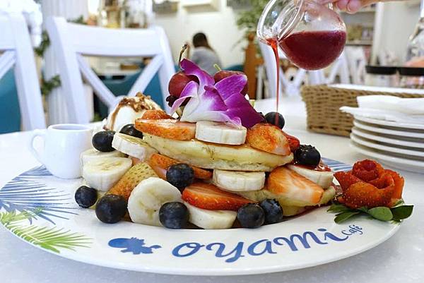 層層疊高的鬆餅擺上多種水果,繽紛的外表確實很有夏威夷熱情活力的感覺,聽說這份鬆餅很常上電視,是媒體寵兒呢