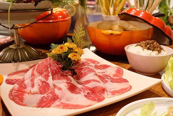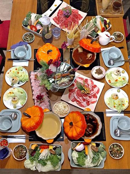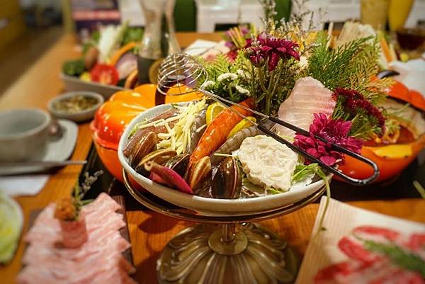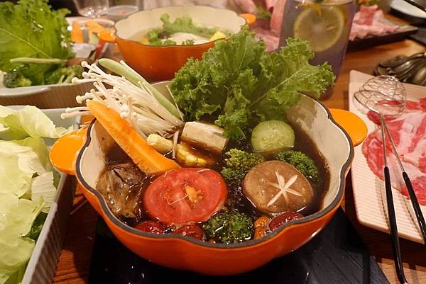 鍋物套餐都含有前菜(沙拉)、有機菜盤、肉或海鮮盤、澱粉類主食、甜點、飲料,內容真的非常澎湃