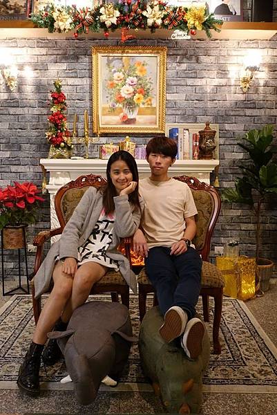 暖爐背景超有FU,好像電影裡的歐美客廳
