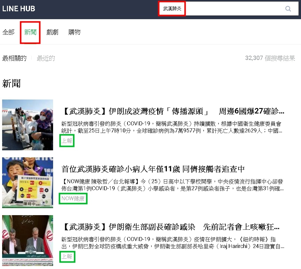 只要在搜尋框中打「武漢肺炎」