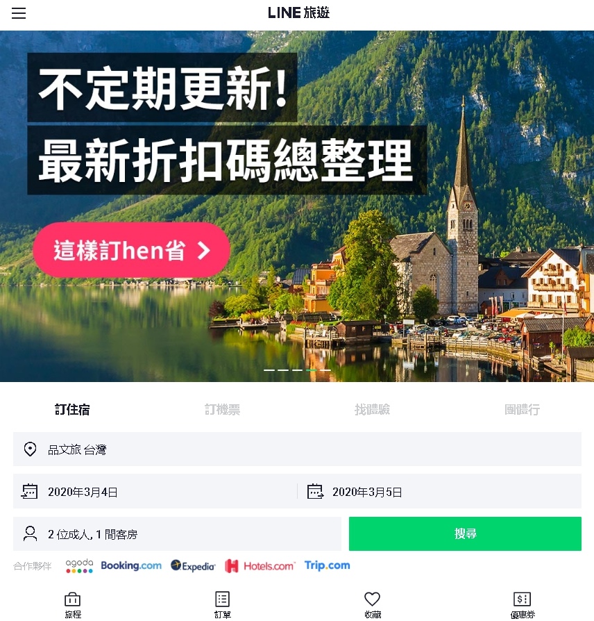 LINE旅遊上可以訂住宿、訂機票、找各種包套行程或活動體驗、也可以找跟團的團體行程