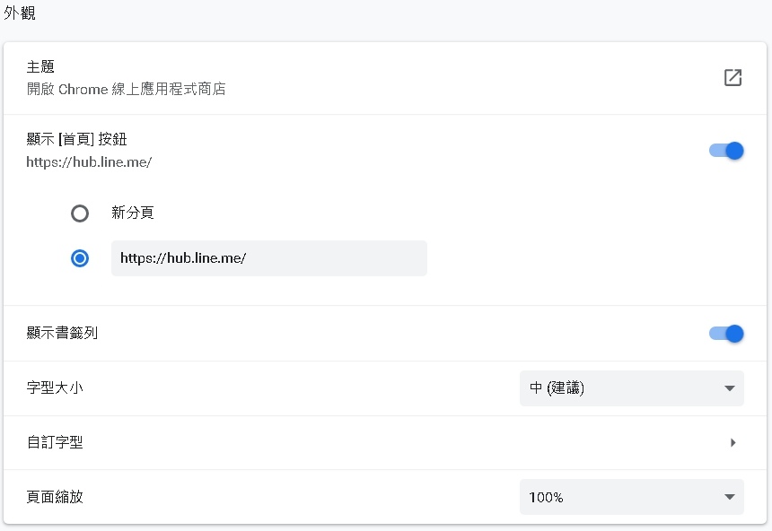 在「輸入自訂網址」中貼上LINE HUB的首頁網址 https://hub.line.me/