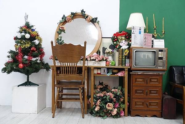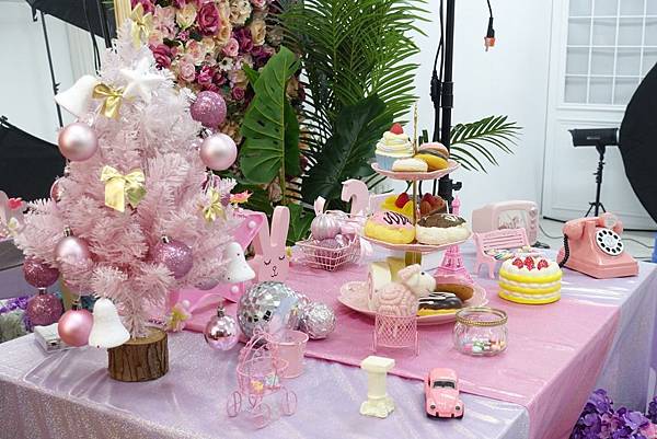 而且這個攝影棚有很多用途,四處都有不同的場景和一些裝飾品,只要稍作擺設,就搖身一變成為婚紗寫真的布景