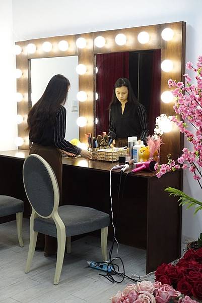 最棒的是現場有兩座超大梳妝台,環形的照明好像攝影棚後台,瞬間覺得自己變成大明星