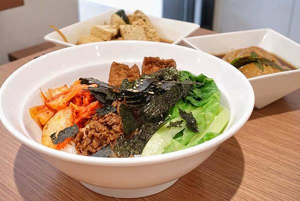 五色菜飯就有點像便當的概念,有泡菜、素若燥、青菜、海苔、油豆腐5種顏色,超級美~