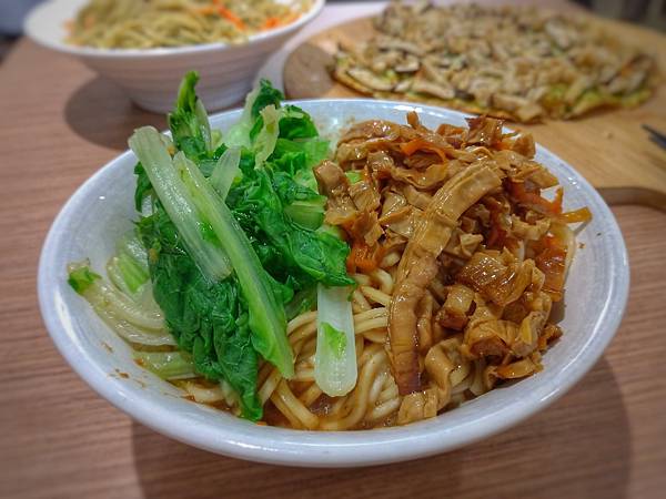 我覺得蔬食餐廳很常見到各種乾麵湯麵,不過臭大蔬的麵食口味稍微多變一些,也有飯食可以選擇,這點很加分~~