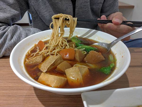除了麵還有滿滿的青菜和豆包,纖維和蛋白質都有顧到