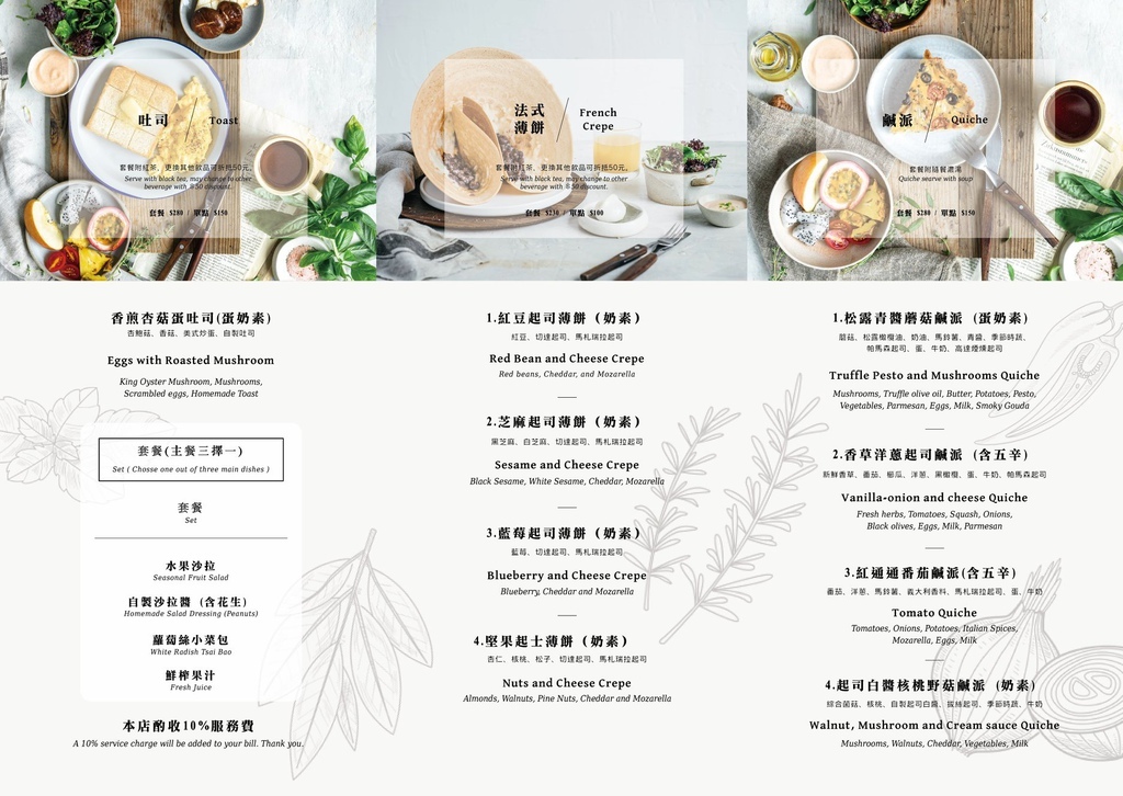 起司白醬核桃野菇鹹派 套餐 $280 ✅ 奶素