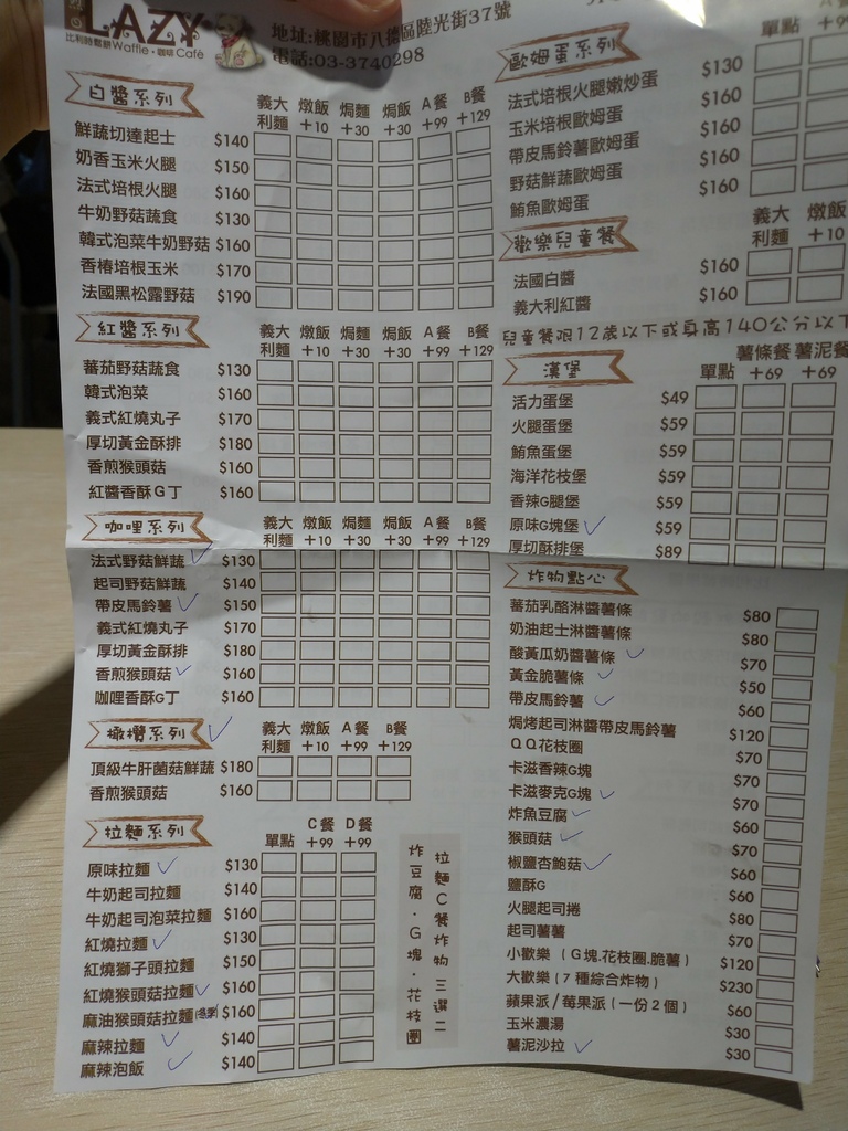 菜單沒有特別標示素別,我們請老闆幫忙把可以做全素的餐點打勾,給大家參考