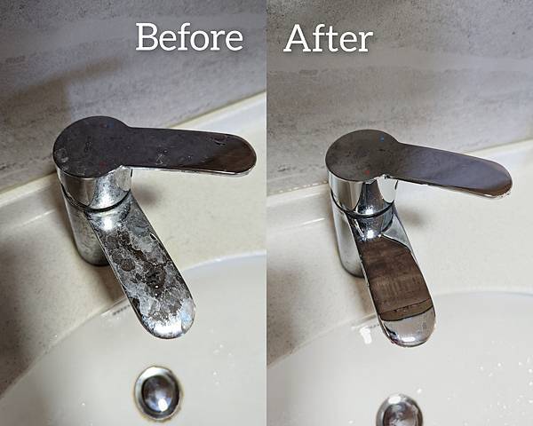 噴完只要靜置 10 分鐘,水龍頭就有變清澈的感覺了