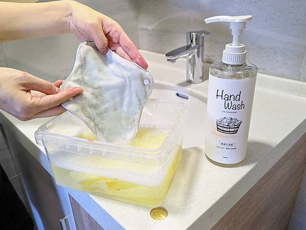 洗布衛生棉我會先用過碳酸鈉粉濕敷,再拉長手洗精浸泡的時間