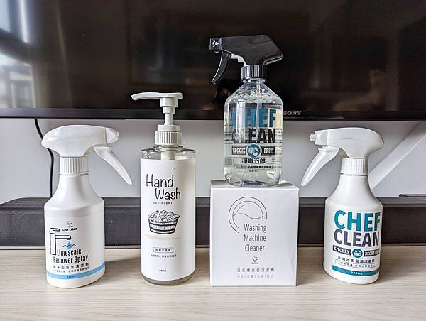 這次要和大家分享蔬果清潔劑、去油汙廚房清潔慕斯、酵素衣物手洗精、洗衣槽抗菌清潔劑、除水垢浴室清潔劑,總共 5 樣家事產品