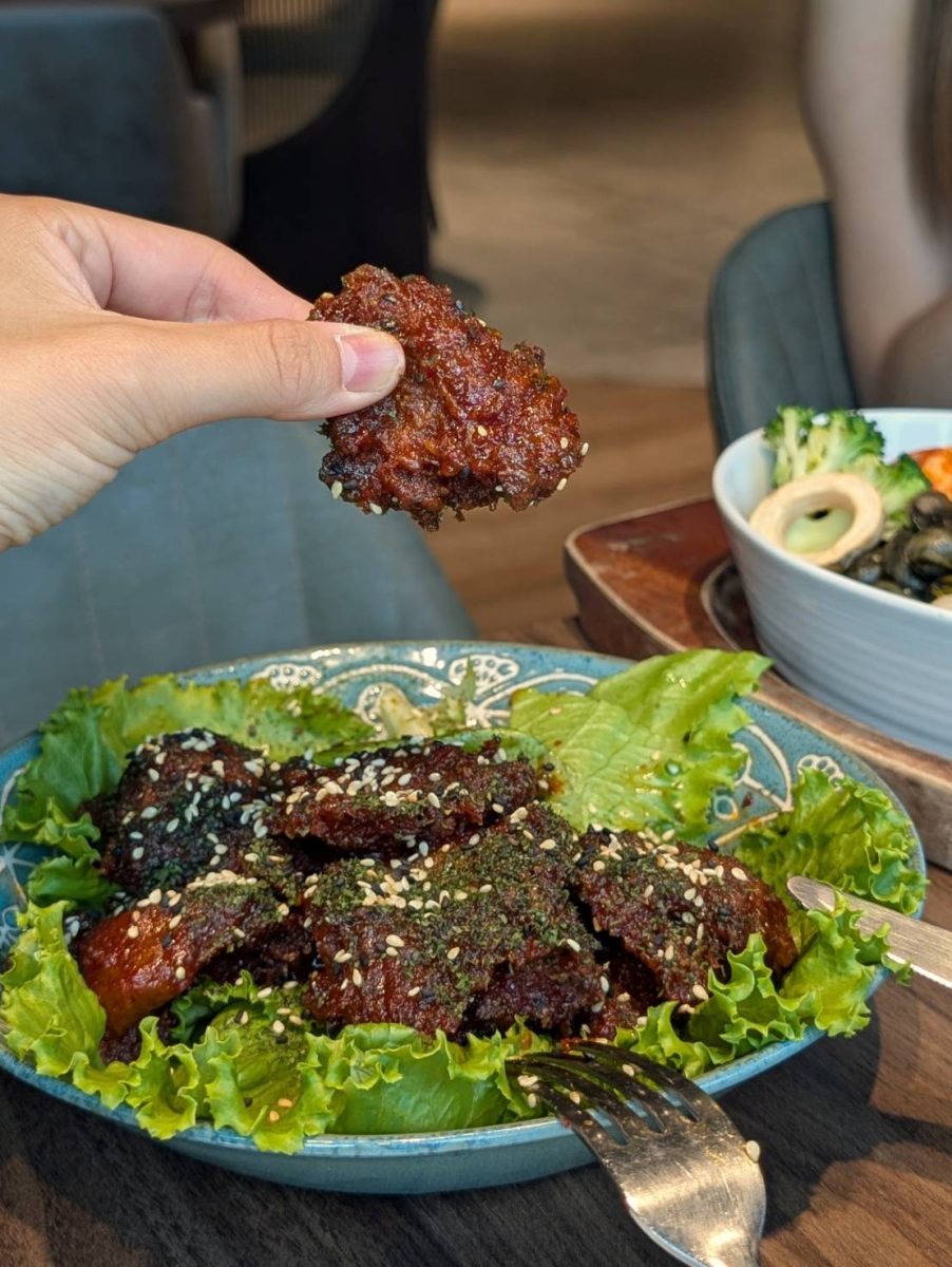 口感是脆脆硬硬有點嚼勁的,醬汁偏甜不太辣,我覺得沒有很韓,但它是一份好吃的炸雞
