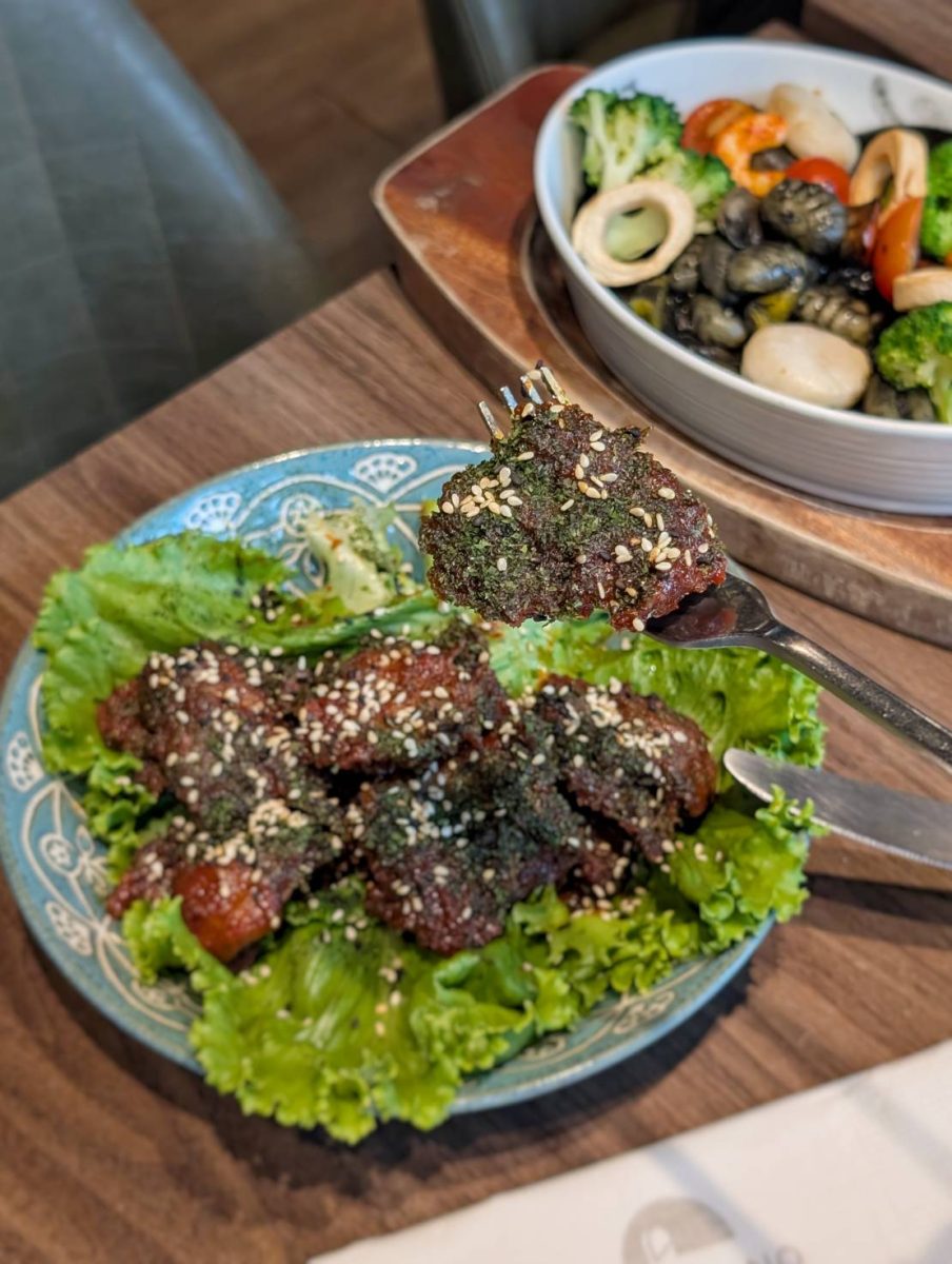裡面的「素海鮮」大多是用蒟蒻做的,但不同的「海鮮」口感竟然不同,有些 Q 彈、有些較硬,也沒有一般蒟蒻素料那種假假的感覺🤣讓我非常驚艷啊!