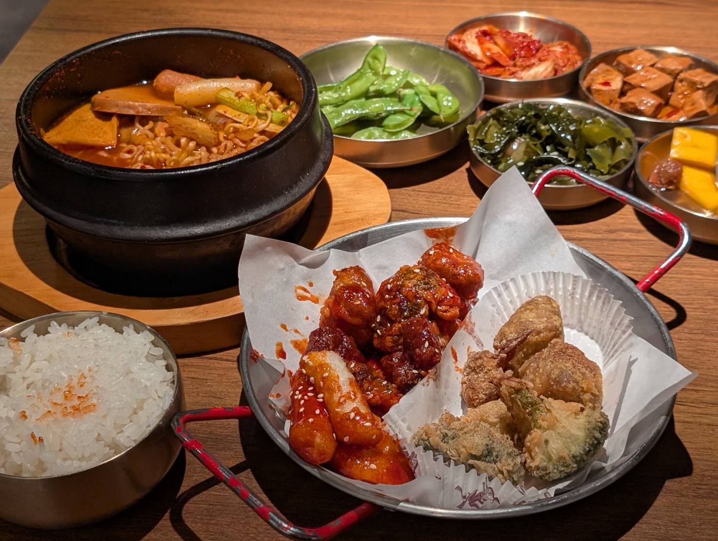 除了鍋內的泡麵外還會附上一碗白飯,完全還原了韓國澱粉 + 澱粉的組合,超級過癮😁